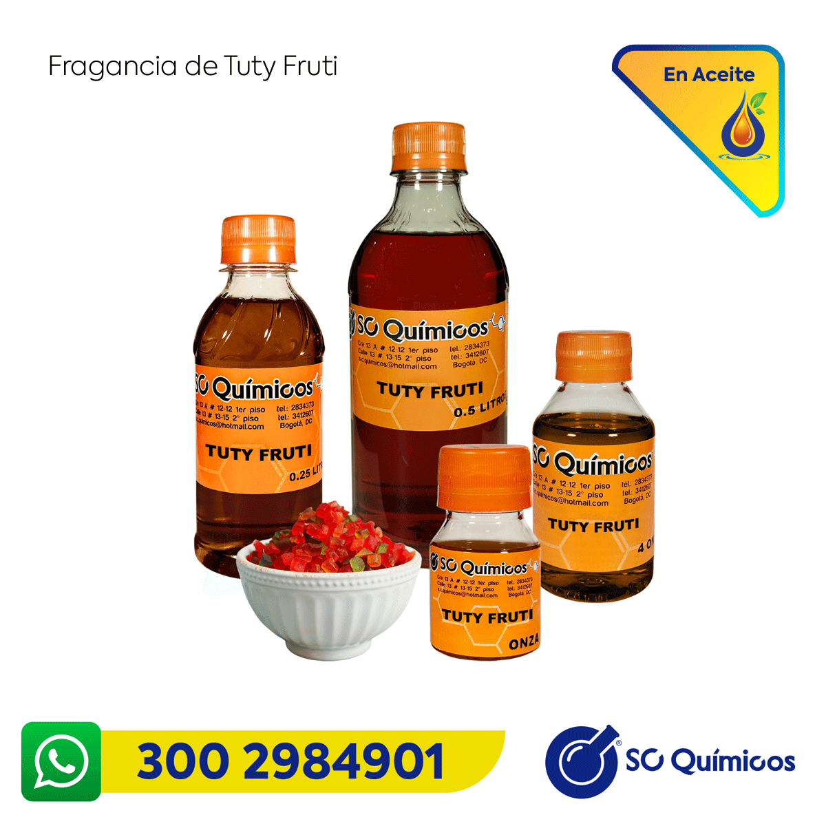 Con una excelente compatibilidad en bases líquidas, sólidas y semisólidas, la Fragancia Tuty Fruti se integra fácilmente en jabones líquidos, lociones, exfoliantes y detergentes. Este producto asegura una fijación duradera, transformando cada creación en una experiencia aromática llena de vida y frescura.